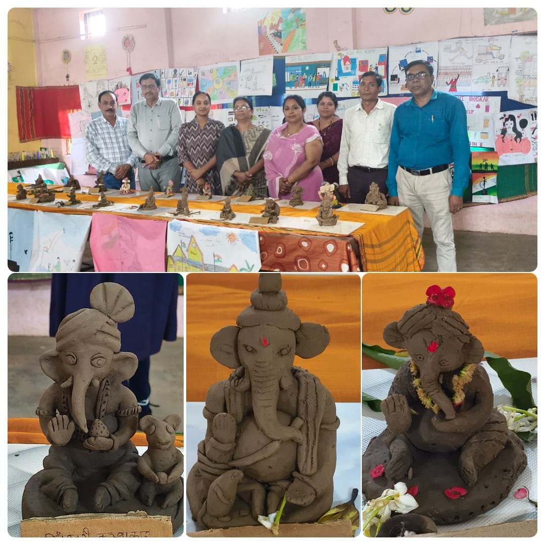 कन्या शाला की छात्राओं ने बनाये मिट्टी के गणेश प्रतिमाएं -दिया पर्यावरण संरक्षण का संदेश। (विविध विषयों पर चित्रकला और मांडल प्रदर्शनी का हुआ भी शानदार आयोजन ) छत्तीसगढ़ राज्य के 25वीं वर्षगांठ पर रजत जयंती के अवसर पर नगर के कन्या हायर सेकंडरी विद्यालय में शनिवार को मूर्ति कला प्रतियोगिता एवं चित्रकला प्रदर्शनी का आयोजन किया गया । छात्राओं…