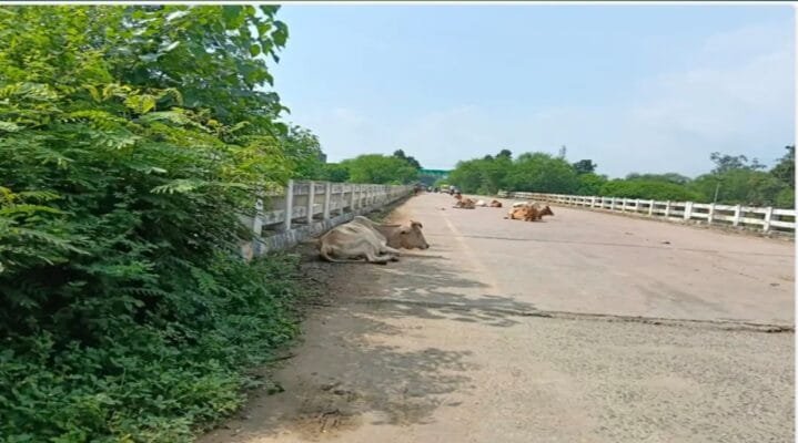 कुई-कुकदूर के बीच आगर नदी पर बने पुल पर मवेशियों के झुंड से हादसे का खतरा।