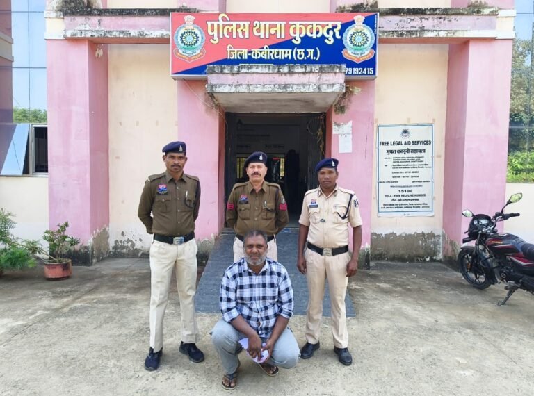 पंडरिया :- थाना कुकदूर पुलिस द्वारा अवैध शराब परिवहन प्रकरण में लंबे समय से फरार चल रहे आरोपी धर्मेन्द्र उर्फ सोनू सारीवान को गिरफ्तार किया गया। दिनांक 19.11.2025 जिला कबीरधाम कबीरधाम पुलिस द्वारा अवैध शराब परिवहन प्रकरण में लंबे समय से फरार चल रहे आरोपी धर्मेन्द्र उर्फ सोनू सारीवान को गिरफ्तार किया गया। आरोपी पंचायत चुनाव के दौरान मध्यप्रदेश से…