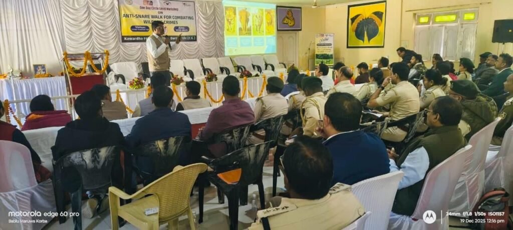 वन्यप्राणियों की सुरक्षा सुनिश्चित करने एवं अवैध शिकार पर प्रभावी नियंत्रण के उद्देश्य से “एंटी स्नेयर वॉक फॉर कम्बेटिंग वाईल्डलाइफ क्राईम” विषय पर वृत्त स्तरीय एक दिवसीय कार्यशाला का आयोजन आज दिनांक 19.12.2025 को काष्ठागार सभागार, कवर्धा में किया गया।