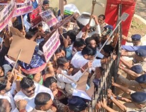 पंडरिया विधायक के ख़िलाफ़ जमकर नारेबाजी-सड़क निर्माण रुकवाने का आरोप – भड़के ग्रामीणों ने घेरा कवर्धा PWD कार्यालय